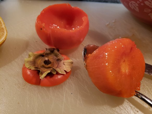 The astonishing colour of persimmons … and this is the last post of this fruit, I’m sure you’ll be relieved to read!