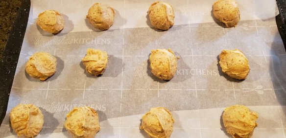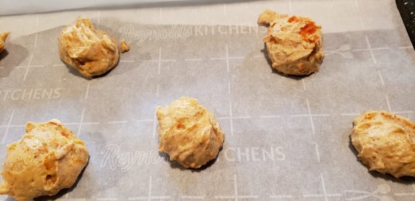Use a spoon or scoop to place dough on cookie tray, but be sure to leave large gaps on pan as these spread out while baking. Line baking pan with parchment paper to prevent sticking.