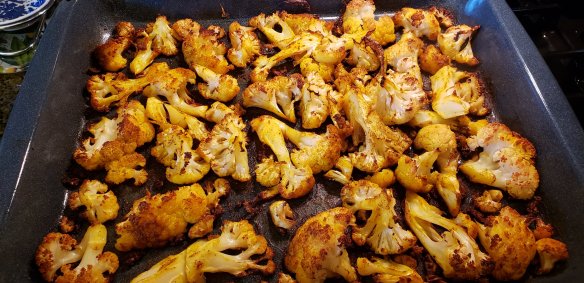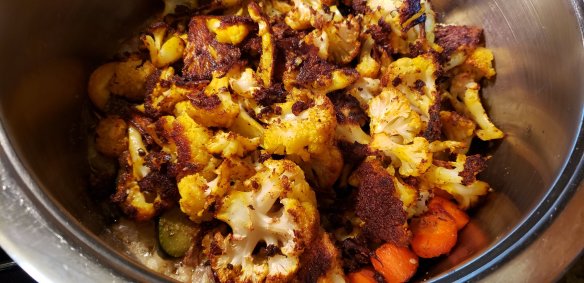 Roast the cauliflower and other veggies in 375F oven for 55 minutes or until nicely browned.