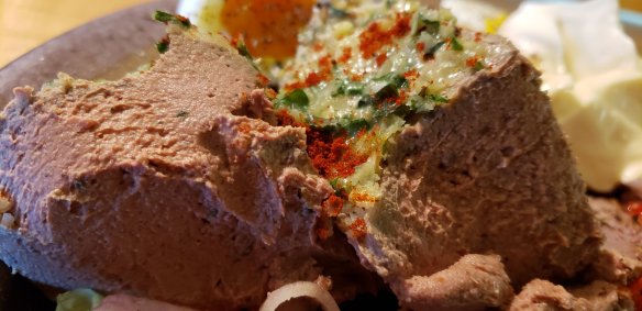 If you don’t top it with garlic parsley butter add 6 cloves of garlic to the livers. But do remember to top and seal the top with melted butter to prevent the top going a grey colour and to seal it. Keeps well for up to two weeks refrigerated and sealed.