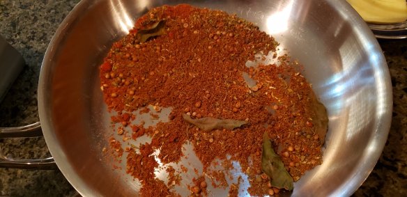 - Toasted herbs and spices: chilli, cumin, mustard powder, paprika, coriander, mustard seeds, cumin seeds, oregano, curry leaves, lightly toasted in a pan
