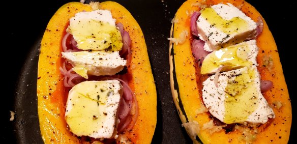 4 thoughts on “Roasted Squash Boats with Goats Cheese