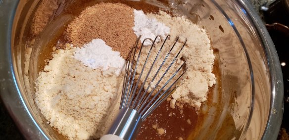Cinnamon, cloves, allspice, caramel and vanilla essence with browned butter and sour cream are added to almond flour, ground flaxseed and a few other ingredients to make these LCHF muffins.