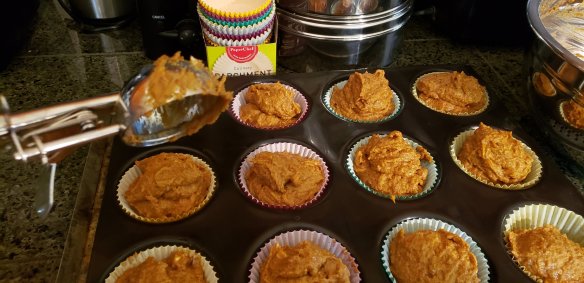 Anyhow, my partner spotted the can of pumpkin and it was deemed ominous! LOL, also not a pumpkin pie kinda person! So … hopefully these muffins with pass the taste-test.