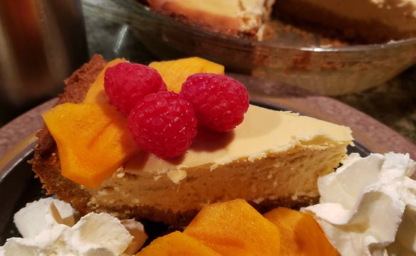 Served with fresh cream, raspberries and one of the 5 persimmons our tree produced this year (last year we had over 400!)