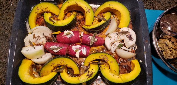 - 1 large kabocha squash, sliced – or large butternut, Hubbard squash, or 3 acorn squash would be great too