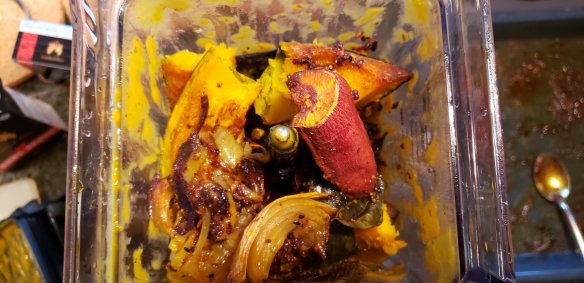 - Place in 350F oven and roast for 1 1/2 hours or until soft for blending