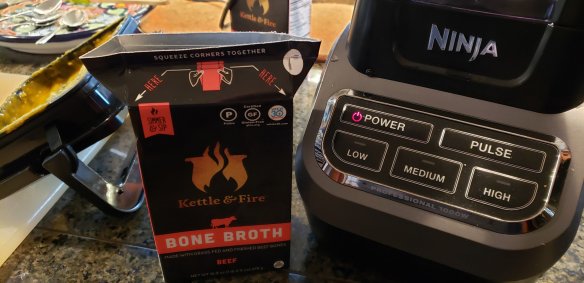 - 2 boxes 16 OZ Kettle & Fire bone broth, or any stock will be good (4 to 6 cups)
