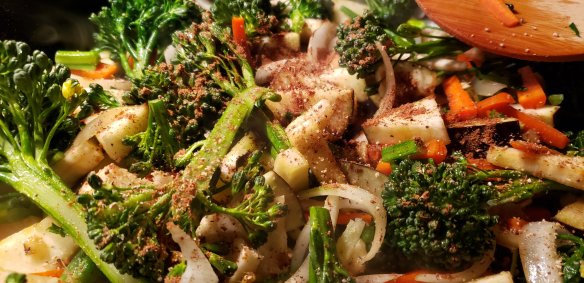 - Add the broccolini or greens last, when the eggplants/carrots are starting to cook nicely and have a nice sauteed look about them