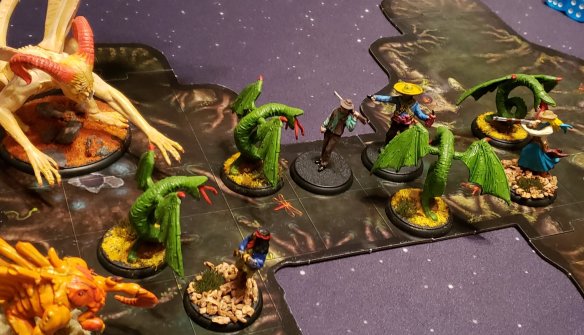 We had a fun evening playing Brimstone, here is a photo of the final Harbinger boss fight, which we just barely beat. It’s an incredibly complex game and our friend did an awesome job navigating the many guide books and complex rules.