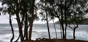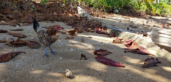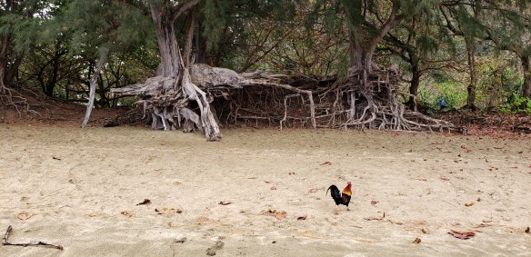 Every time we went to the beach, we had the same friendly hen hang out with us. Maybe she liked the treats! The trees growing on the beaches are spectacular and provide wonderful shade.