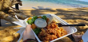 What we loved were the food carts in the beach parking lots and this was fried chicken I had after a lovely long snorkel. The coral reef was badly damaged and denuded of much of it’s former beauty, but when we did discover a still intact cluster of coral, the fish were beautiful.
