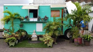 Here are the water fields of taro root growing. We tried hard to find some to eat and the one food cart that did sell it was closed. There are lovely fresh fruit carts to order the most incredible blended juices. Refreshingly delicious.