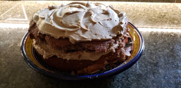 Please enjoy this delicious spice cake failure held together with coffee cream cheese icing! LOL!