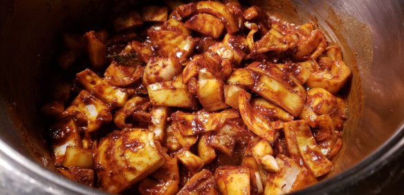 I started this curry at 1pm and it was ready for early dinner. With quarantine measures still in place and our “work from home” situation, it makes for quality slow cooked food prepped at lunch time and ready for dinner.