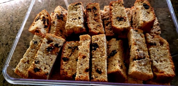 I baked my sweetie some good old South African raisin rusks that I’ve mentioned before. Definitely not keto but a pic is below. I added a cup of hazelnut flour and he really enjoyed them! If anyone wants the recipe just let me know. Rusks drying in the oven and then boxed for eating!