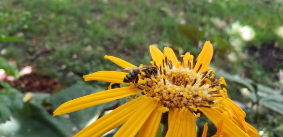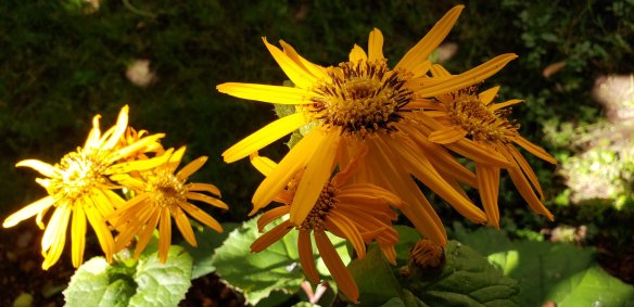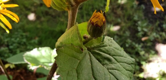This shade loving flower I’m still so entranced with is a Ligularia dentata and the version we have is Midnight Lady. Wonderful dreamy fragrance and the bees think so too! It has a very interesting way of budding!