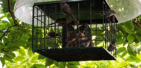 Summery shaded lunchtime looking towards the rose garden under the persimmon tree. It’s warm this week.