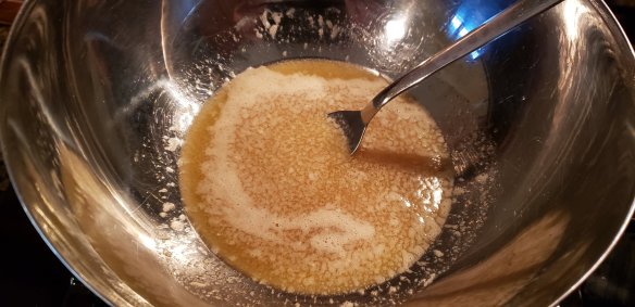 - Melt butter and stir in sugar until dissolved