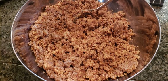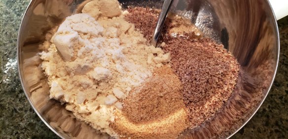 - Add nut flours, flaxseed and stir until crumbled and well mixed
