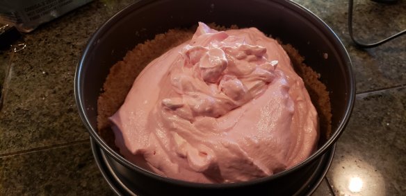 - Pour filling into springform cheesecake pan