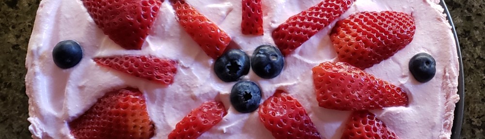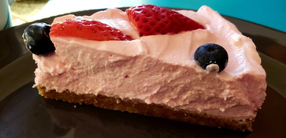 - Decorate with cut strawberries and blueberries
