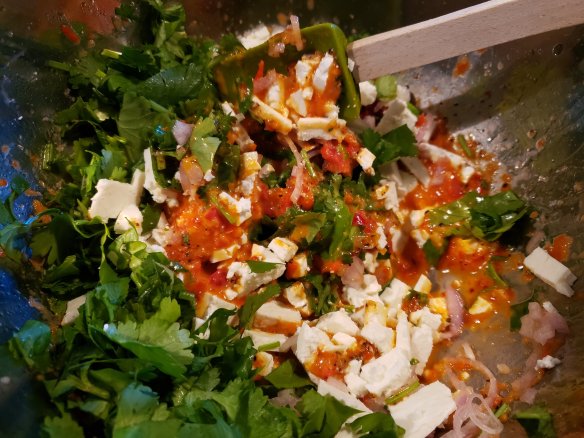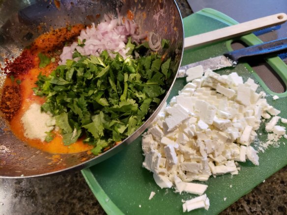 - 1/2 block feta, chopped (I used goat feta here, yum!)