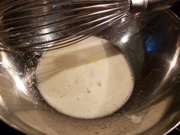 - Pour into the well the blended orange, egg, oil and cream wet mixture Fold batter together until well mixed adding in melted butter as you go