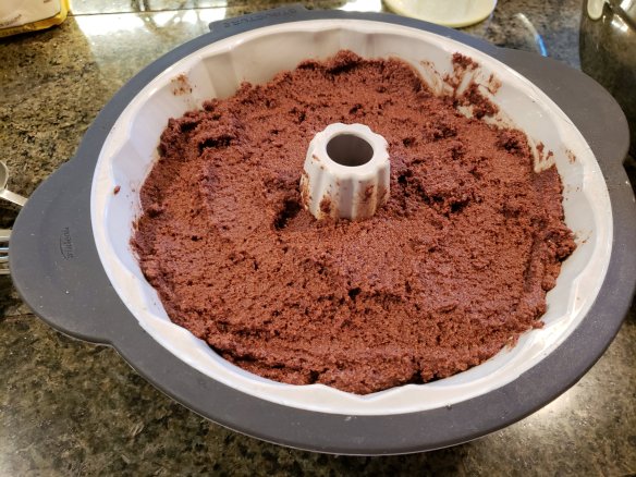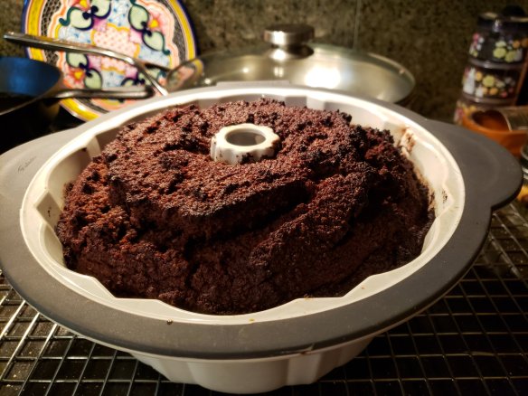 - Bake for about 1 hr 25 minutes in bundt pan or 40 minutes in loaf pan or until a skewer comes out clean after inserting into the cake very gently.
