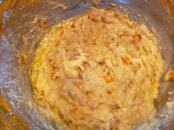 - Mix together wet ingredients and add to dry.
