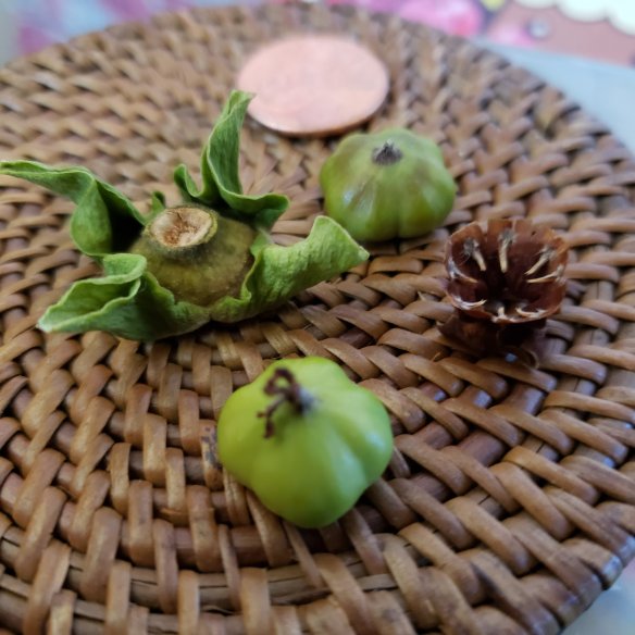 They are so delicate and tiny! The little whorls attach them to the tree. A penny for sizing.