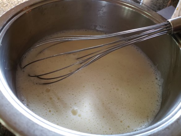 - Pour over well stirred cream mix (the sugar and gelatine may settle at the bottom while cooling in the pot, so whisk before pouring over)