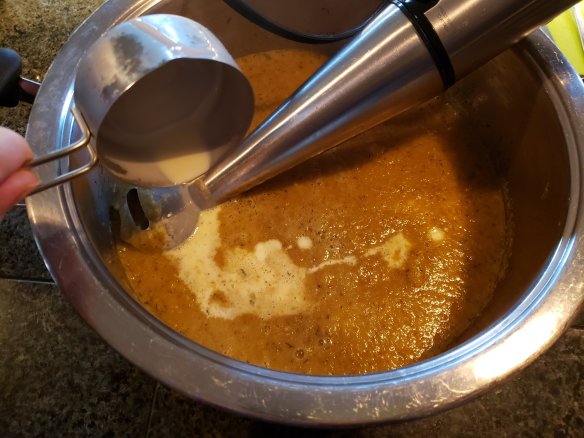 - Now blend the soup into a creamy smooth mix, add the cream and blend again.