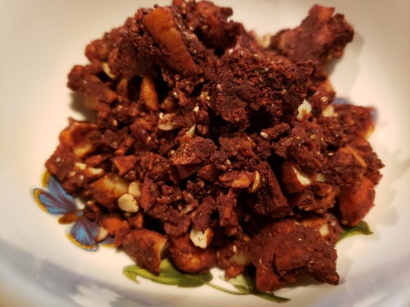 Bake in oven for 25 to 30 minutes until the chocolate nut mix looks nicely set. 160⁰C/320⁰F