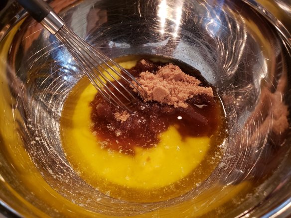 - Gently melt butter on stove and when melted stir in and dissolve keto sugar. Whisk well. Turn off heat.