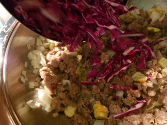 - Add ground pork (you could use ground beef or chicken if you prefer)