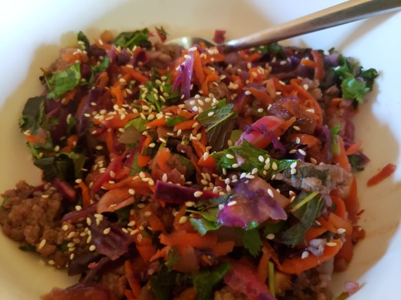 I miss Spring Rolls. That wrapped crunchy goodness! Here’s a little recipe of what (probably) goes in them… and a little bit extra…without the roll.
