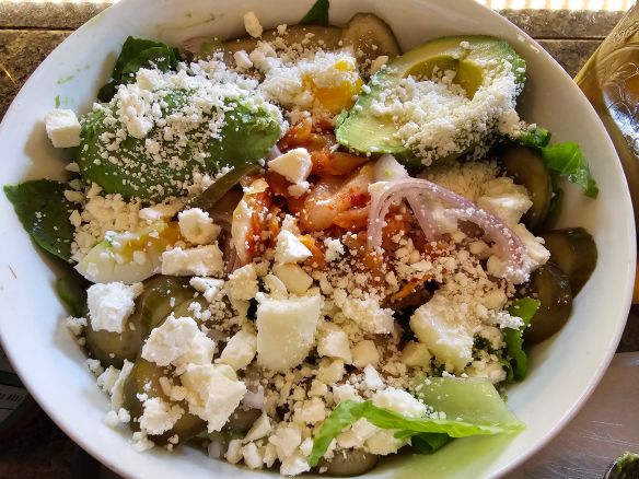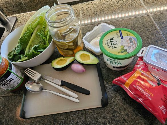 Crush the tortilla chips and sprinkle over salad