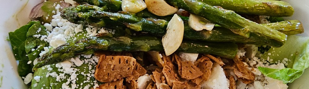 Top with any other veggies of your choice. I added hot buttered garlic asparagus.