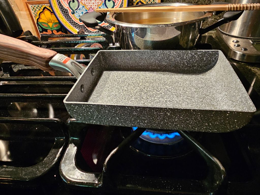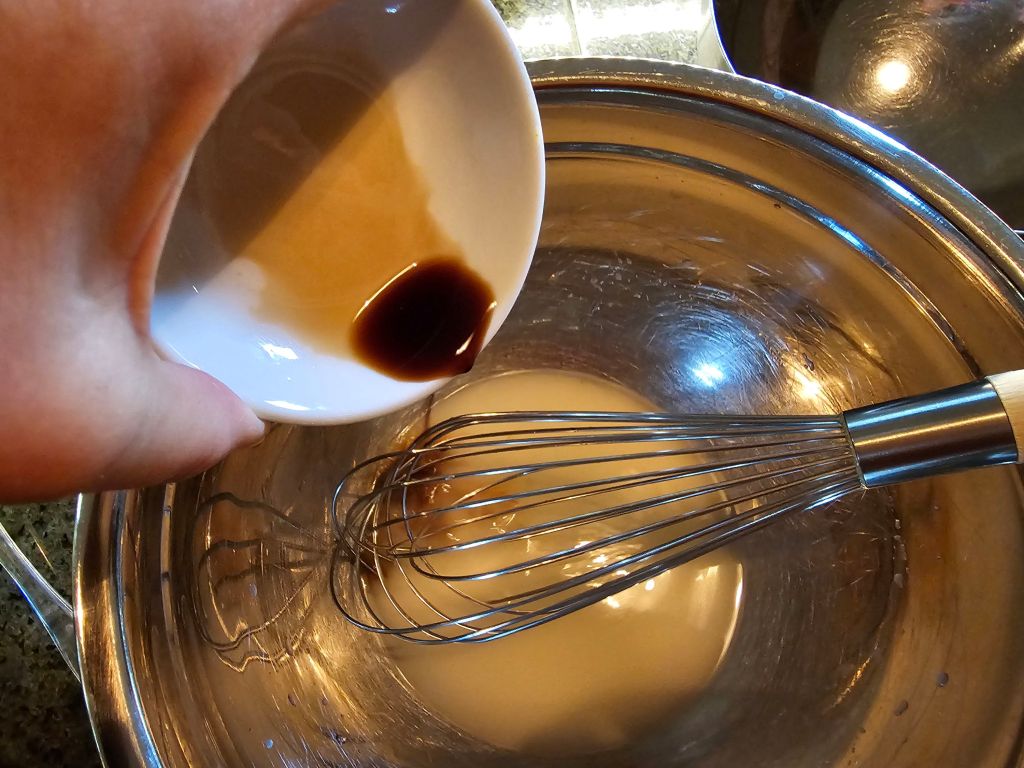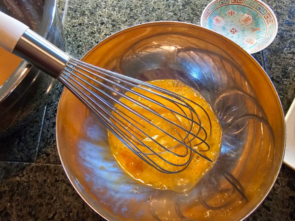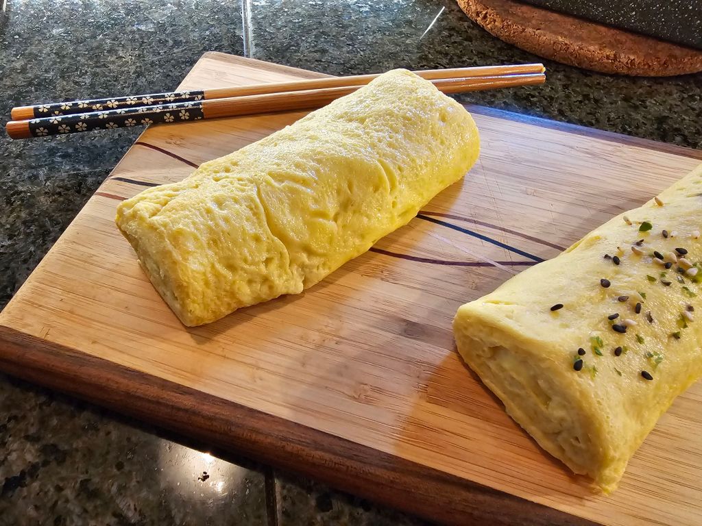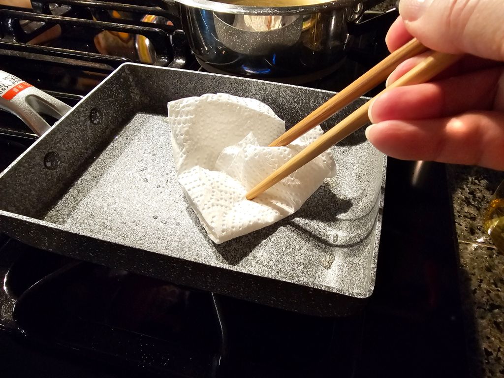 Add the beaten eggs to your dashi mix. Btw, the mirin gives it a slight sweetness; you can skip to avoid the carbs.