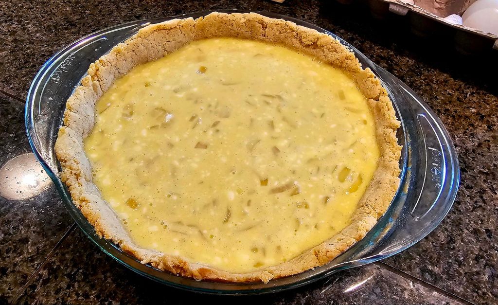 - Fry 4 sliced shallots in butter while the pie crust blind bakes