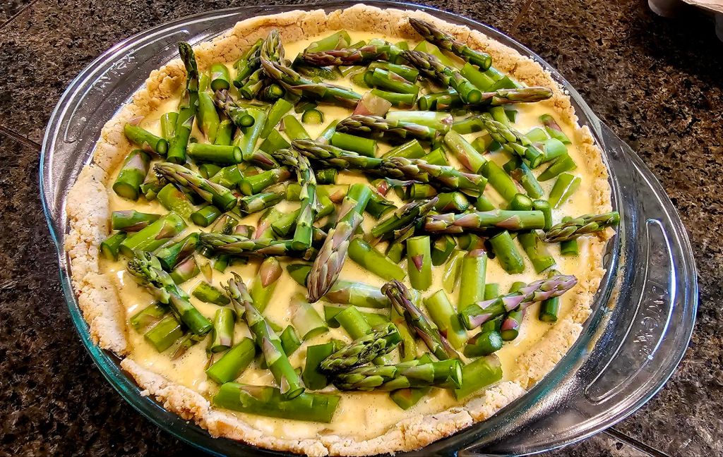 - Place chopped asparagus on top of cheese, pressing down the veg lightly