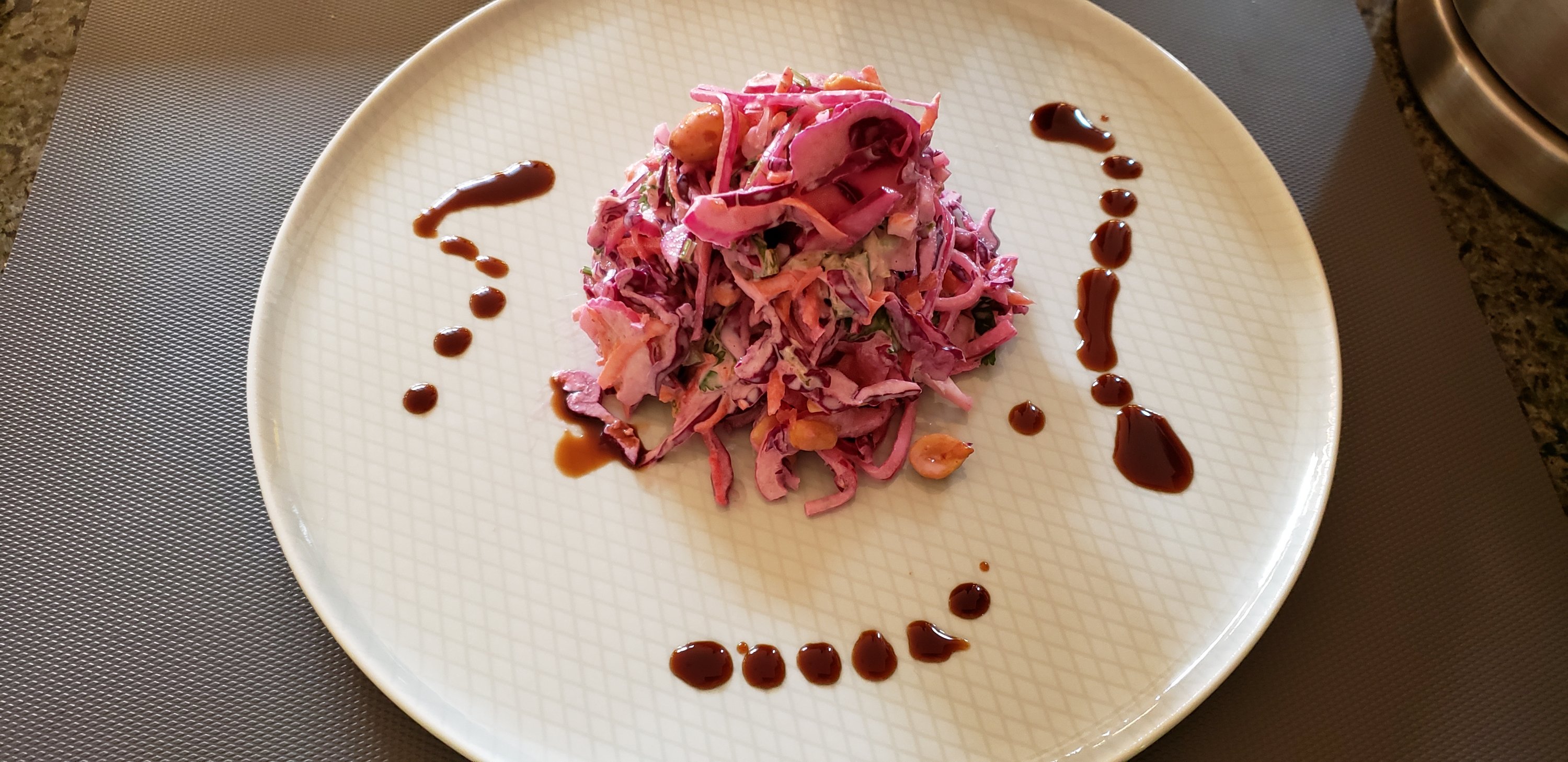 I served it with a splash of reduced balsamic vinegar infused with fresh mint. Serve with boiled eggs and kielbasa sausage slices.