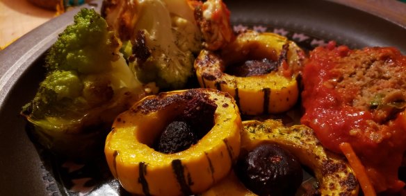- Chicken, beef or onion stock to cover veg, about 4 to 5 cups (1 litre)