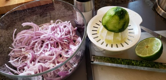 Marinade finely shredded onion in lime juice and salt for 20 minutes