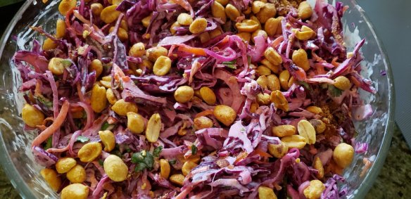 Lime, Chili and Cilantro Coleslaw with roasted peanuts